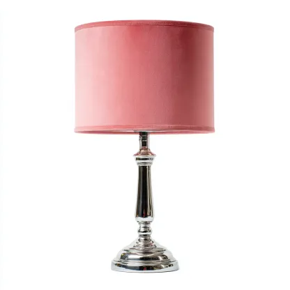 Elegancka lampa stołowa o klasycznym kształcie i nowoczesnym wykończeniu stanowi idealne połączenie stylu i funkcjonalności. Różowy welurowy abażur w zestawieniu z połyskującą srebrną podstawą tworzy stylowy element dekoracyjny do sypialni, salonu lub biura.