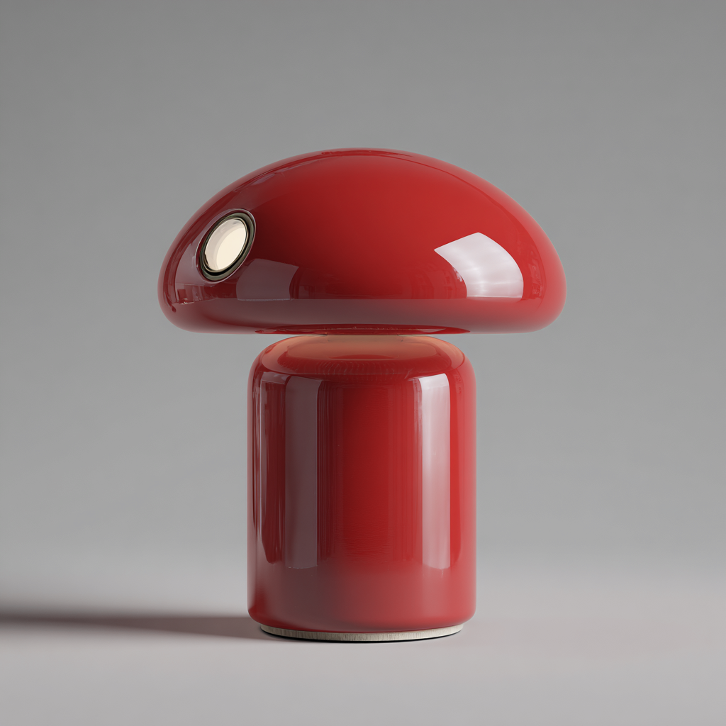 Nowoczesna czerwona lampa stołowa o wyjątkowym kształcie grzybka to idealne połączenie stylu i funkcjonalności. Jej kompaktowa forma sprawia, że świetnie nadaje się do wnętrz o współczesnym charakterze.