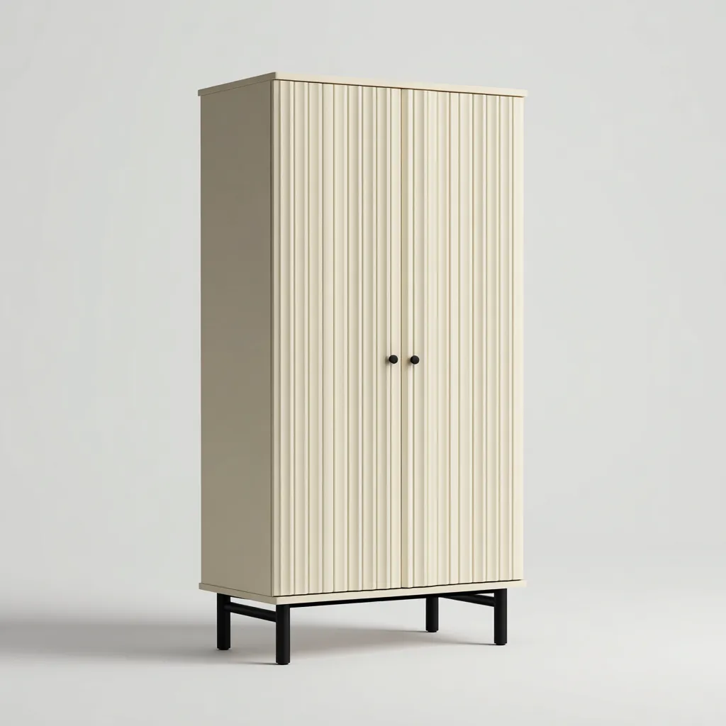 Nowoczesna szafa 2-drzwiowa w kolorze kremowym to elegancki i minimalistyczny mebel idealny do sypialni lub garderoby. Jej pionowe żłobienia na frontach nadają wnętrzu subtelnego charakteru i wprowadzają wrażenie lekkości.