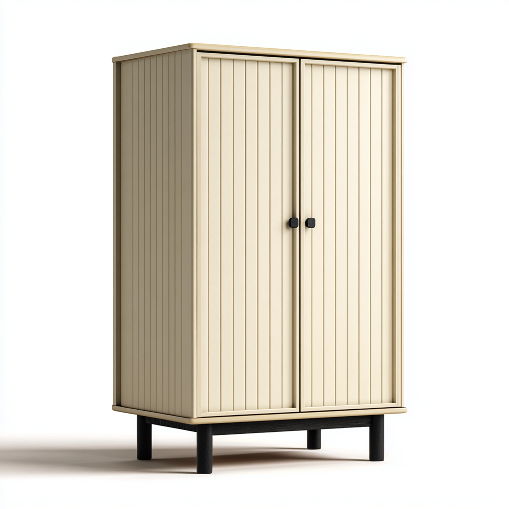 Nowoczesna szafa 2-drzwiowa w odcieniu kremowym to idealny wybór do sypialni lub przedpokoju inspirowanego stylem skandynawskim. Proste linie i pionowe żłobienia nadają meblowi subtelny charakter, a jasna kolorystyka rozjaśnia wnętrze i wprowadza poczucie harmonii.